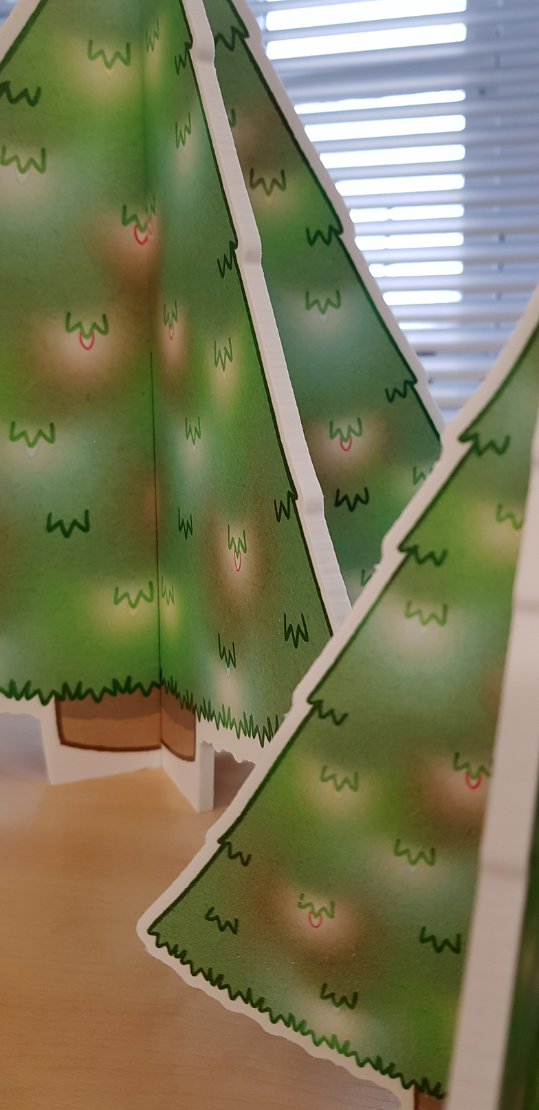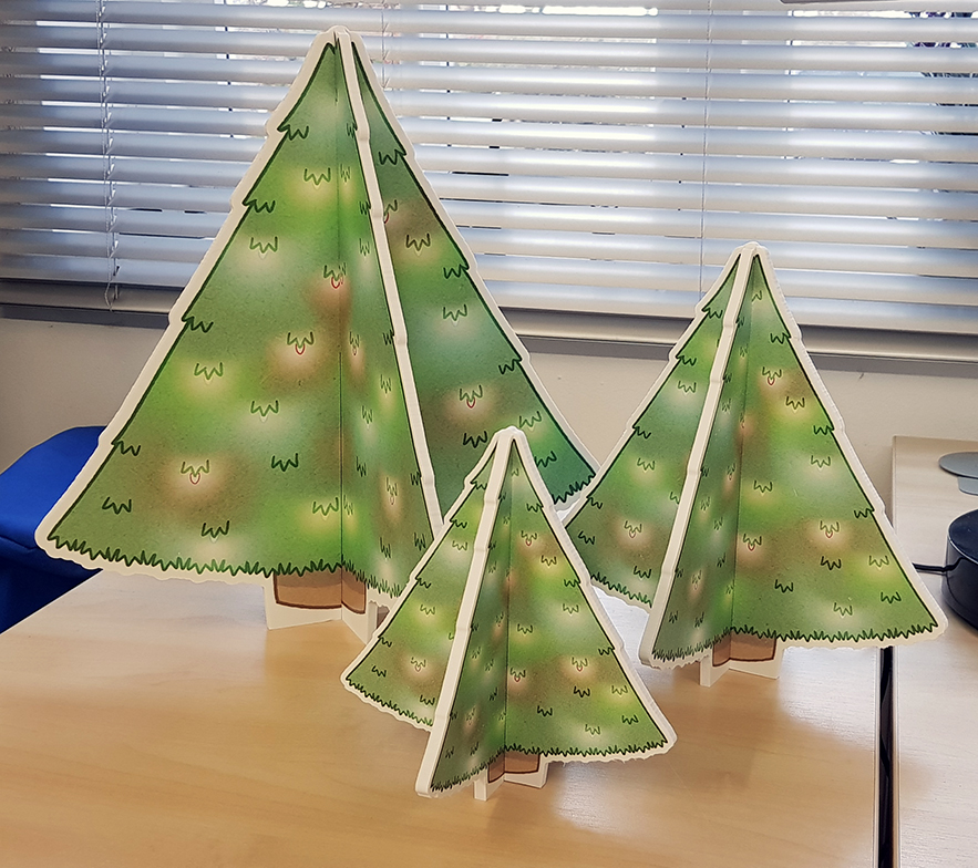 These charming mini Christmas Trees are printed full colour onto 5mm foamex and were made in 3 different sizes. The pieces are then cut to shape and slot together to make a sturdy and effective product.