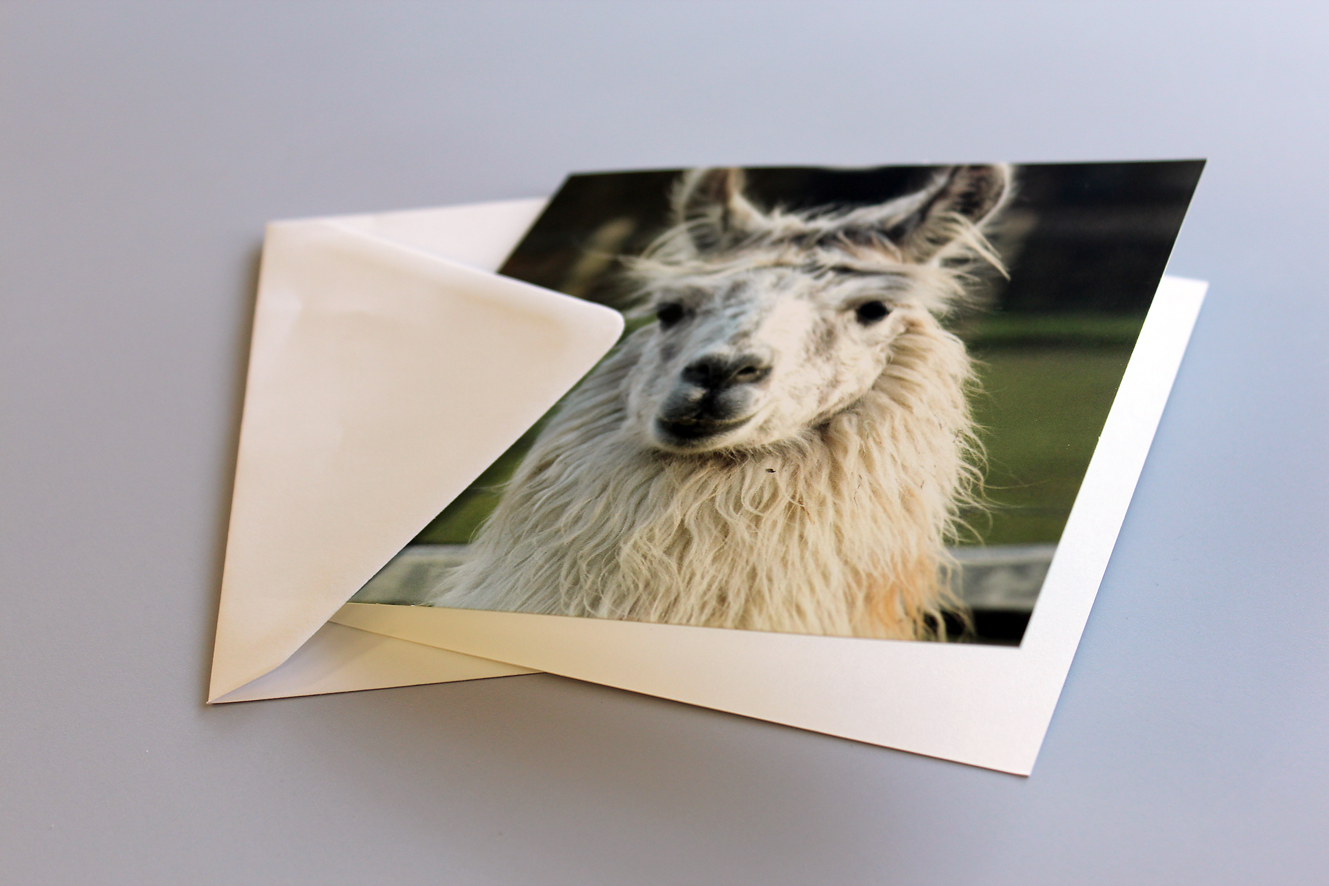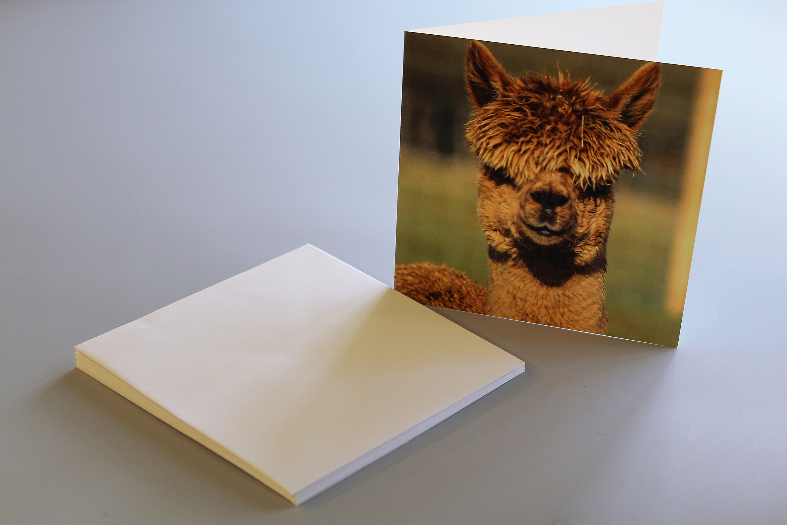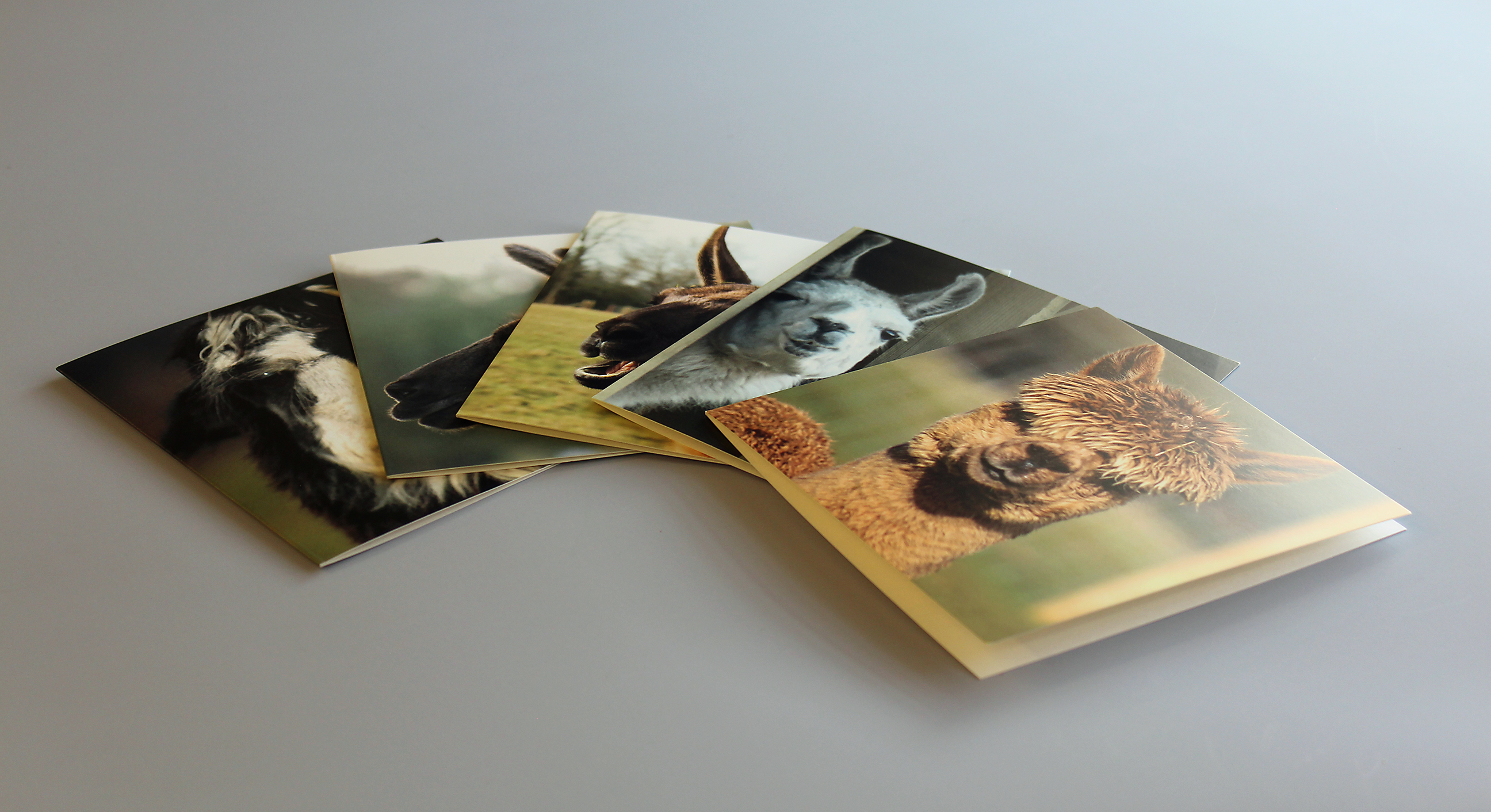 The Llama Park on Ashdown Forest sell a range of promotional products dedicated to their Llamas and these 9 different greeting cards really capture the personality of each individual. High quality photographic printing onto single-sided board and supplied with envelopes to match, these are ideal for the gift shop and will undoubtedly sell very well. The customer ordered exact quantities of 56 cards for each design and this is no problem for digital.